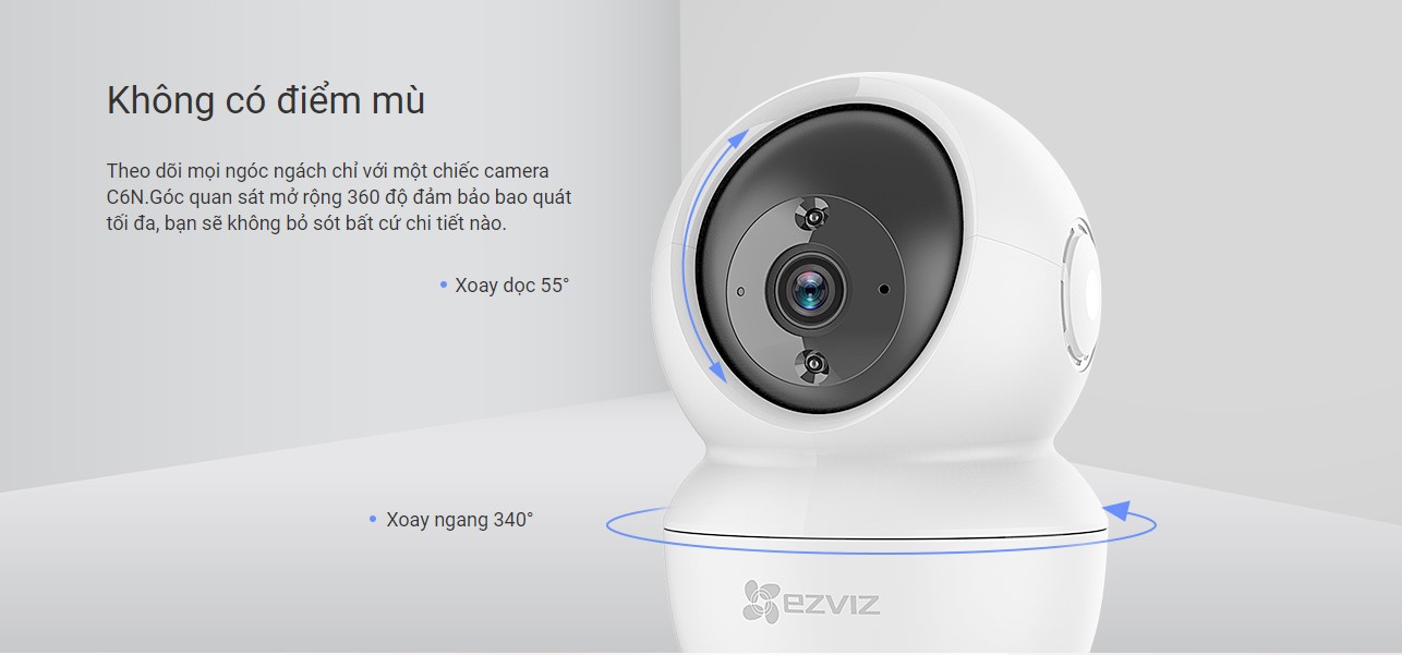 Ngoài việc trang bị ống kính có góc nhìn rộng, model camera EZViz C6N còn cung cấp khả năng nhìn vô đối hơn cho người dùng. Thiết bị mở rộng vùng quét với tính năng FOV cực chuẩn với góc ngang 360°, hơn hết từ ứng dụng điện thoại bạn có thể điều khiển camera xoay đa chiều theo ý muốn bằng góc ngang 340° – dọc 55°.