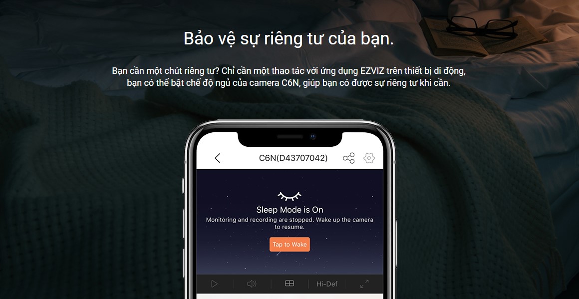Camera wifi ip EZViz C6N sẽ tạm ngừng hoạt động khi bạn CHẠM tắt màn trập riêng tư